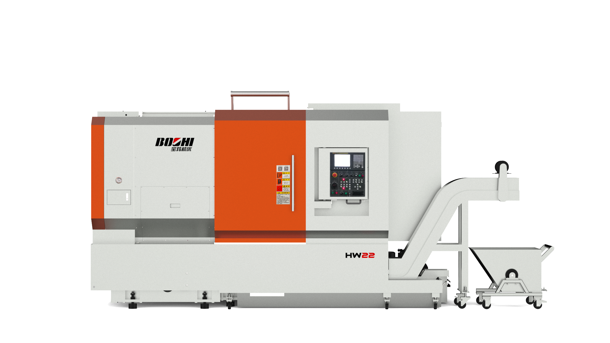 HW22 is a CNC lathe developed for aluminum alloy wheel turning of automobile and motorcycle industry. The machine adopts integral inclined bed, sliding stick plastic guide rail, through-hole spindle, 12 position tool rest, full protection, large flow chip flushing system, etc.